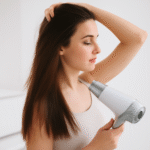 フィックスミストを使う際は、顔から20〜30cmほど離し、顔全体にまんべんなくかかるように、X字→T字を描くようにスプレーします。吹きかけすぎると逆にヨレの原因になることがあるので、霧がふんわり肌に乗る程度の回数でOKです。スプレー後は、こすらずに数十秒〜1分ほどそのままおいて、自然に乾くのを待ちましょう。